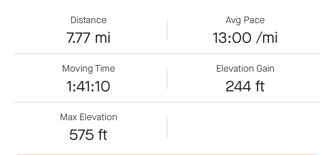 점심을 먹은지 얼마 되지 않아 속도 더부룩하고 점점 옆구리도 아프고 급기야 배에서 신호까지 오는 상황이 발생하였습니다. 최소한 10마일+를 하려고 했는데 결국 다 채우지 못하고 돌아와야 했습니다 오늘의 교훈은. 달리기 전에 꼭 소화를 시킬 것. 뛸 때 과한 음식은 절대로 먹지 말자입니다.