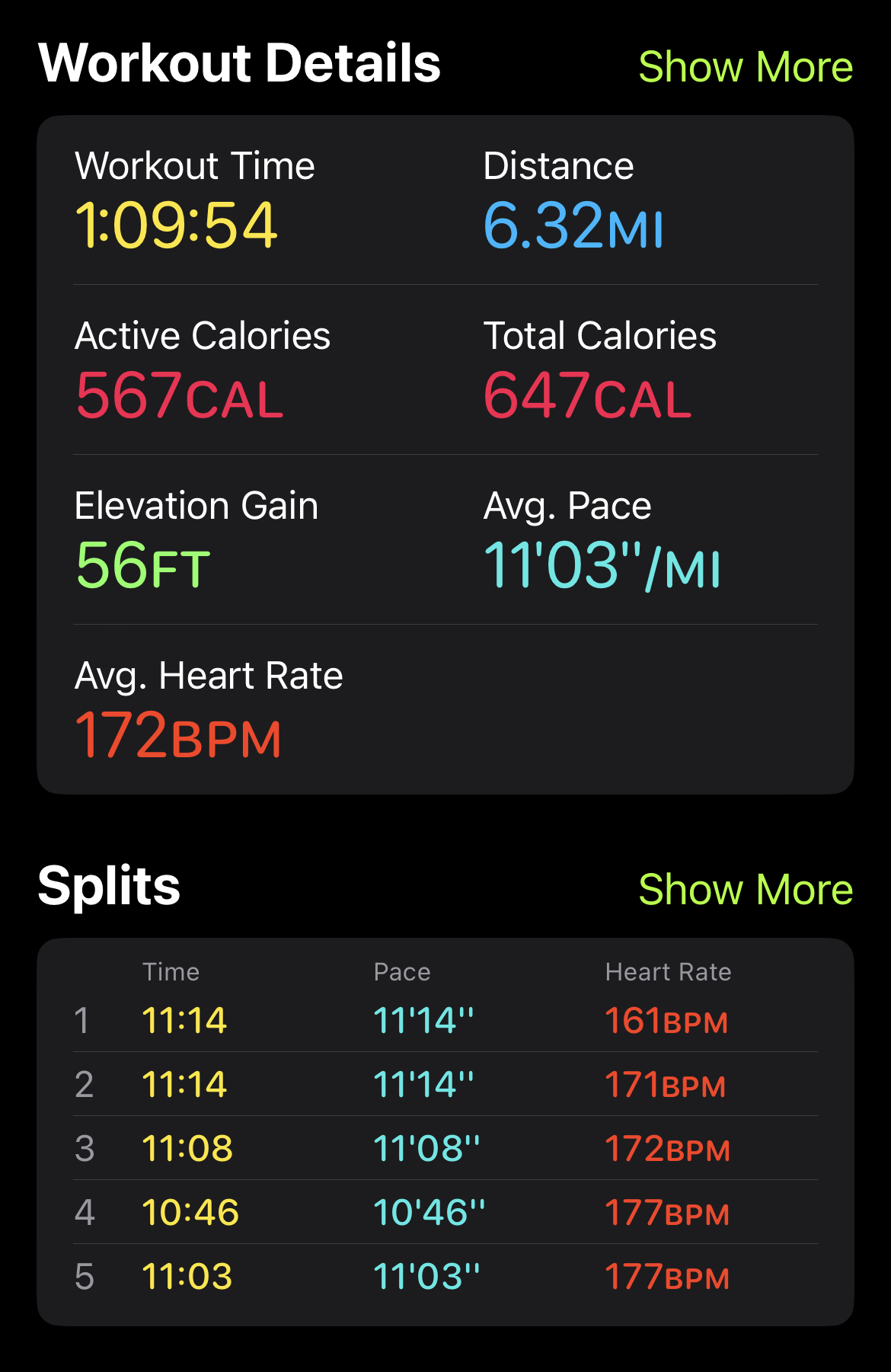 솔직히 말하면 저 스스로 5K 뛰기에서 10K로 오는데 별다른 비법이랄 것은 없었던 것 같아요. 그냥 속도가 들쭉날쭉하지 않게 마일당 11분대 페이스 (킬로당 6-7분대)로 달리자만 생각했어요. 6킬로, 7킬로 올라가면서 그저 마음속으로 "어머 달려지네?" "세상에 내가 계속 달리고 있네?" 9킬로가 되면서는 "여기까지 왔는데 10킬로미터 채워야겠다." 이 생각만 하고 있었습니다. 그래서 생각해보니 몸도 몸이지만 멘탈이 문제였던 것 같습니다. 당연히 못하겠지, 이만하면 충분하지, 더 달리면 안 되겠지 하는 생각에 더 달려볼 생각도 못했던 스스로의 모습이 보였어요. 글을 적으면서 정리하며 굳이 비법을 찾아보자면 충분한 스트레칭과 멘탈 잡기가 답이 아니었나 싶어요. 8월 5K에서 9월 10K까지 일단 계획했던 대로 흘러왔습니다. 마라톤 대회와 상관없이 10K를 한 번에 달릴 수 있는 몸이 되기를 희망했는데 그런 의미에서 꿈(거창~)을 이루었습니다. 앞으로 10킬로 달리기를 반복하면서 거리에 익숙해지는 연습을 꾸준히 해야겠어요. 학생 때 했던 달리기가 마지막이었는데 나와는 상관없는 운동으로 생각하다가 이렇게 마흔이 되어서 다시 달리기를 해보며 활력과 재미를 찾게 되어서 감사한 마음입니다.