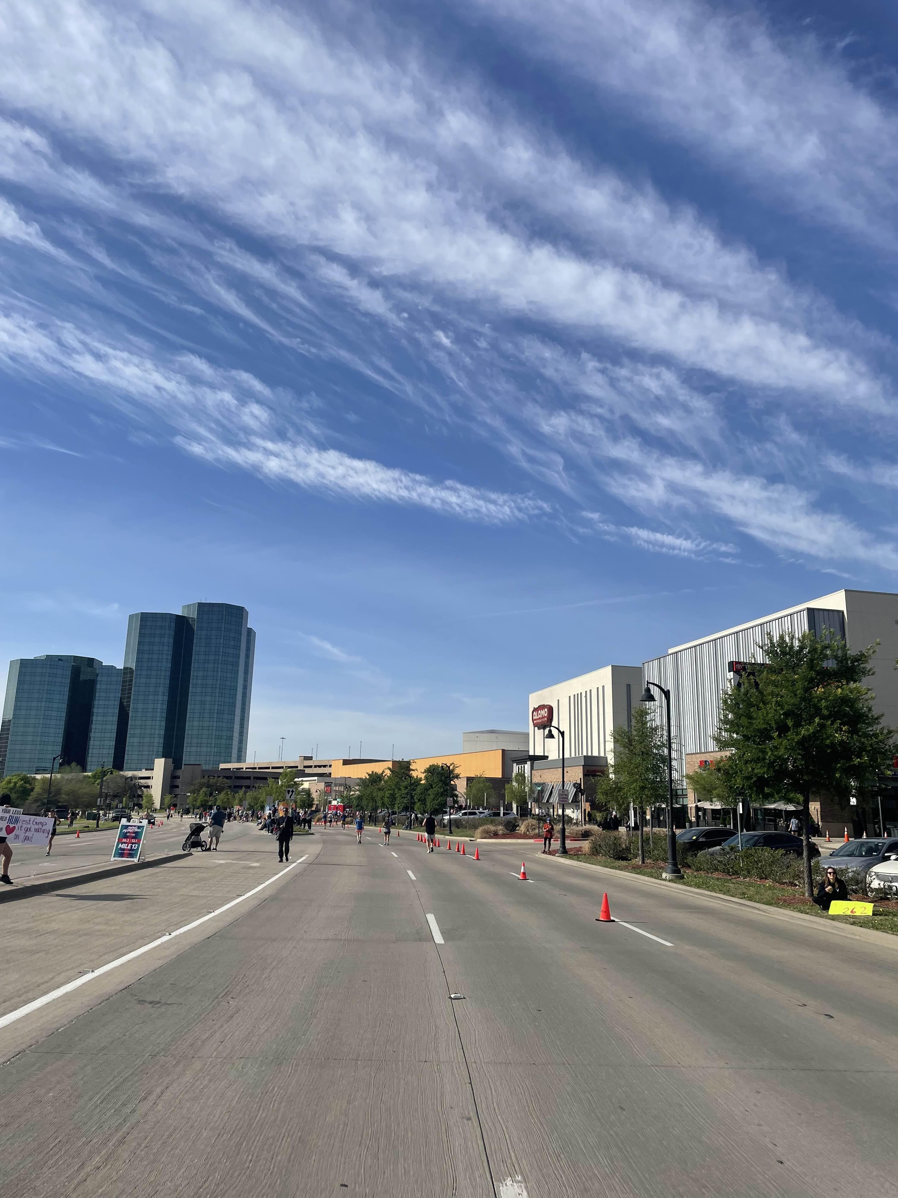 해가 밝아지고 사람들이 스타트라인에 줄을 서기 시작했어요. 이때부터는 좀 떨리더라고요. 달라스 마라톤 때는 풀코스가 없었는데 이번엔 풀 마라톤이 하프를 두 번 반복하는 코스고 출발도 같이 했어요. 대단해 보이는 사람들을 저 앞으로 먼저 보내고 저는 풀코스 5시간 그룹과 함께 섰습니다. 하프 2시간 30분이 목표거든요. 2시간 30분이면 페이스가 마일당 11분대이고 연습했던 대로만 하면 혹시 조금 걷더라도 가능한 시간이라 생각했어요. 첫 하프마라톤에서 무릎부상이 있었기 때문에 절대로 속도를 더 올릴 생각도 없었고 다치지 않고 되도록이면 걷는 구간 없이 2시간 30분 안에 완주하는 것이 목표였습니다.