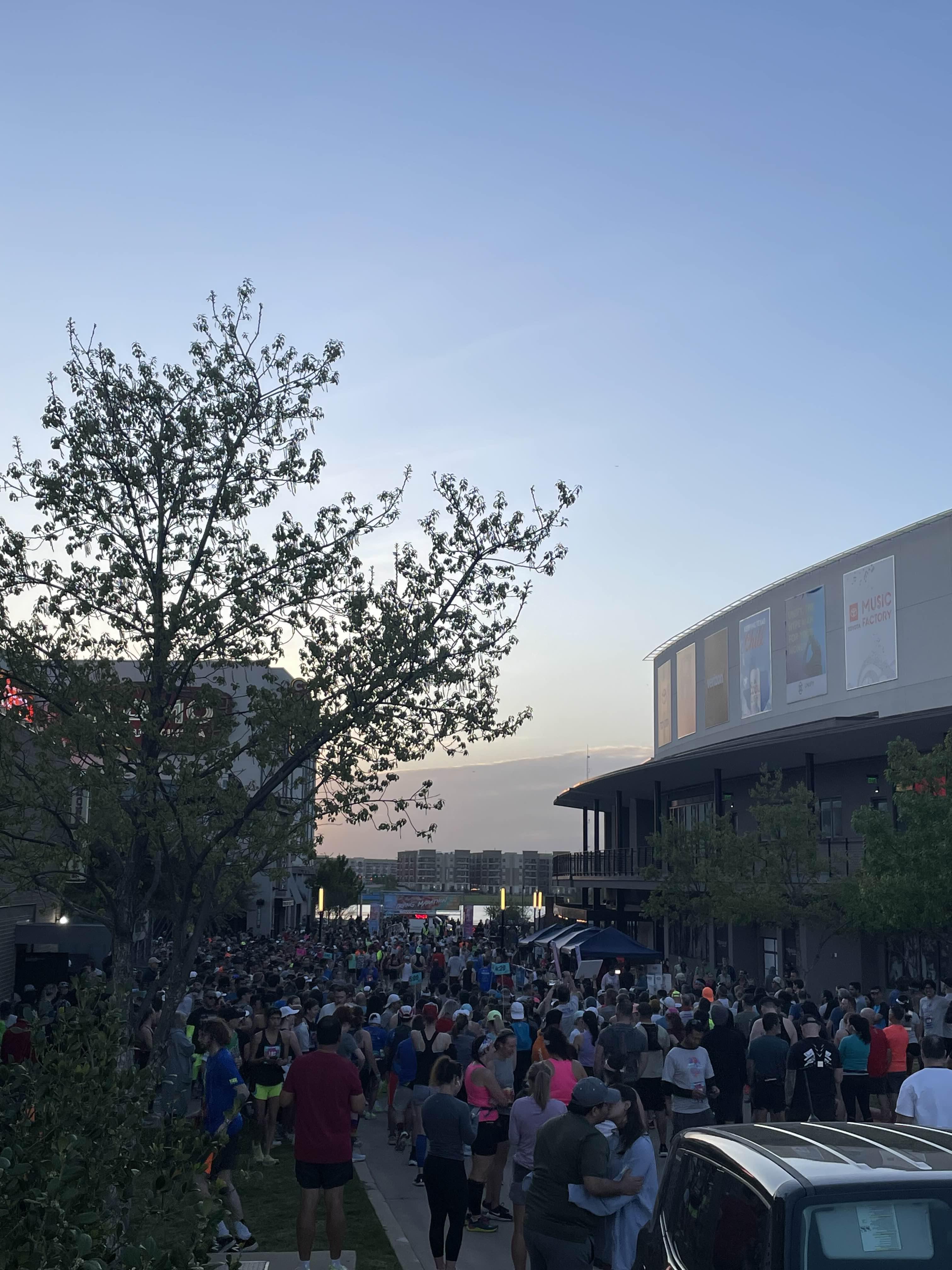 해가 밝아지고 사람들이 스타트라인에 줄을 서기 시작했어요. 이때부터는 좀 떨리더라고요. 달라스 마라톤 때는 풀코스가 없었는데 이번엔 풀 마라톤이 하프를 두 번 반복하는 코스고 출발도 같이 했어요.  대단해 보이는 사람들을 저 앞으로 먼저 보내고 저는 풀코스 5시간 그룹과 함께 섰습니다. 하프 2시간 30분이 목표거든요. 2시간 30분이면 페이스가 마일당 11분대이고 연습했던 대로만 하면 혹시 조금 걷더라도 가능한 시간이라 생각했어요.  첫 하프마라톤에서 무릎부상이 있었기 때문에 절대로 속도를 더 올릴 생각도 없었고 다치지 않고 되도록이면 걷는 구간 없이 2시간 30분 안에 완주하는 것이 목표였습니다.