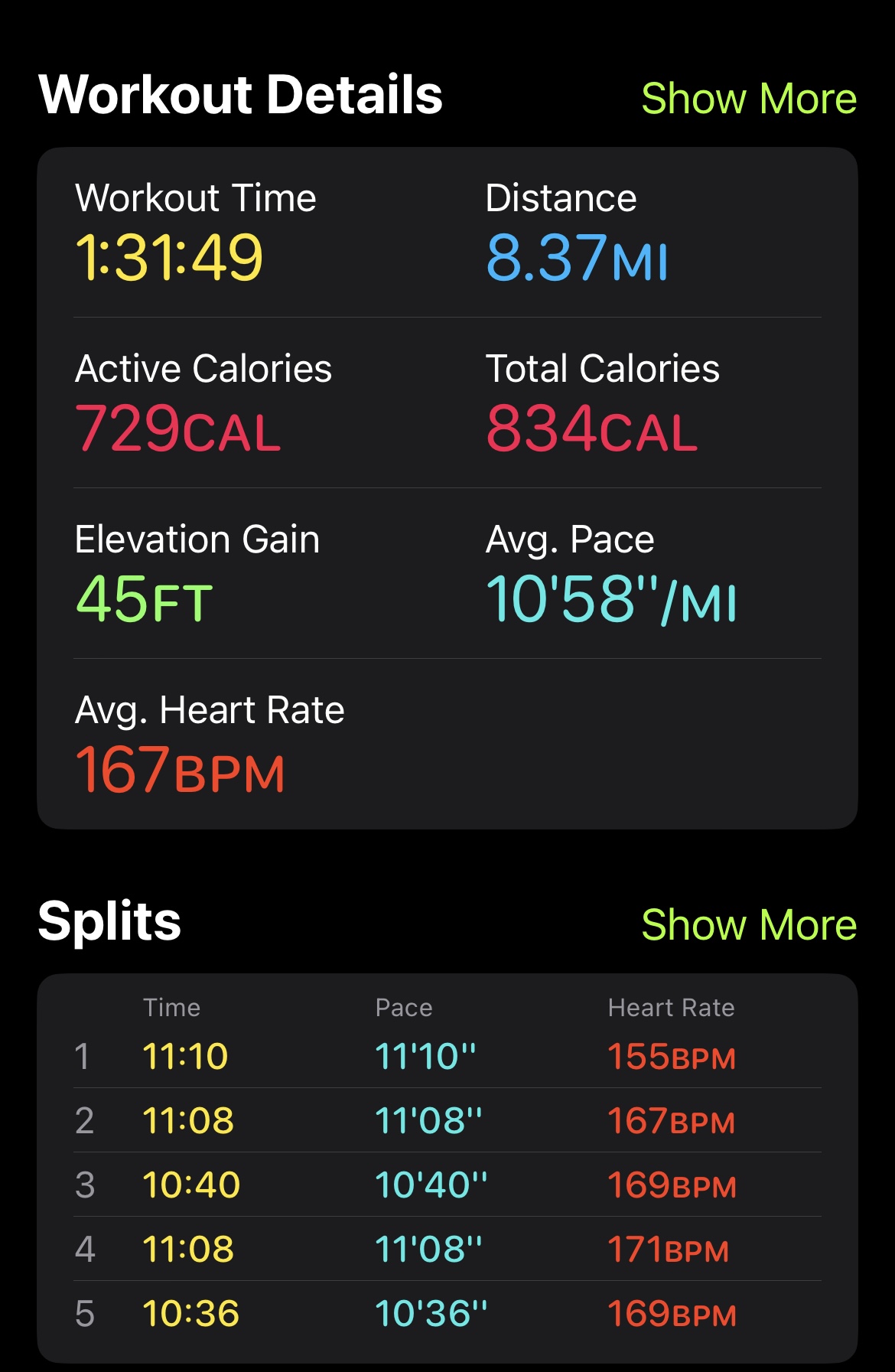 보통 달리기를 시작할 때 몸이 무겁다가 3마일쯤 지나면서 몸이 풀려서 다리 상태는 쾌적해지지만 호흡 때문에 헉헉거리고 다시 다리 통증으로 마무리하는 패턴을 몇 번 반복했습니다. 그런데 오늘은 왠지 호흡도 괜찮고 10K 정도를 왔는데도 몸이 가벼운 것 아니겠어요? 크게 힘들지 않고 다리가 혼자 저절로 알아서 움직이는 느낌을 받았습니다. 호흡도 규칙적이고요. 이게 말로만 듣던 러너스 하이였을까요? 처음이라서 긴가민가합니다. 사실 더 달려보고 싶었지만 갑자기 너무 거리를 늘여서 다리에 무리가 올 것도 걱정이 되고 아이들 픽업 시간에 쫓기는 것도 있어서 적당하게 멈추었습니다. 10마일쯤 달려보면 알 수 있겠지요? 달리기에 몰입하면 다다를 수 있다는 그 무아지경의 경지에 꼭 한번 가보고 싶습니다. ☺️🥰